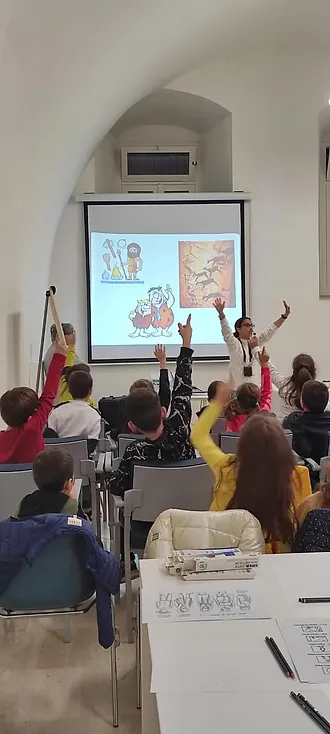 “Pillole di storia di Giovinazzo a fumetti” è un laboratorio fumettistico, a cura della Pro Loco, che si è tenuto dal 18 al 19 Novembre 2024 che è culminato con una mostra presso la Sala San Felice di Giovinazzo, dove sono stati presentati gli elaborati prodotti dai 40 ragazzi e ragazze che hanno partecipato ai due incontri.